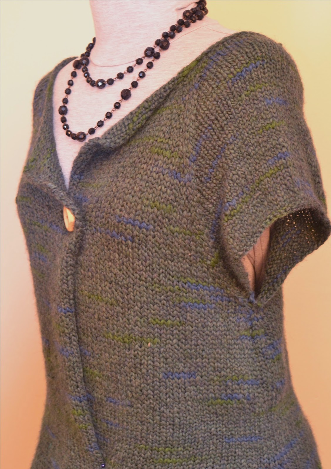 In the hope that blocking might provide this mess with some sort of shapeliness, I decided to steamblock the cardigan. I wrote an earlier blog post on this topic, which is available here.